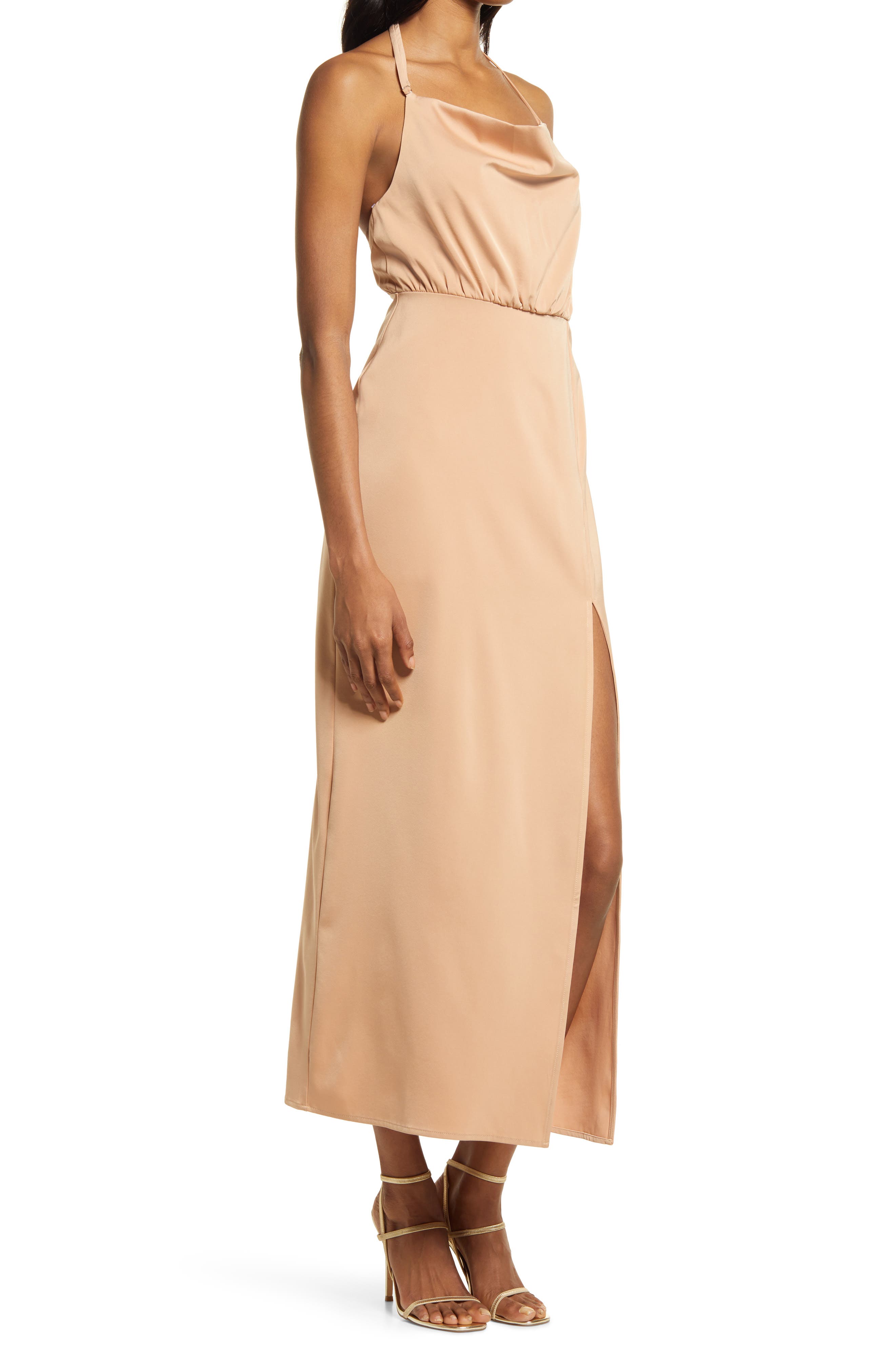 Lulus It S Fate Halter Satin Midi Dress Nordstrom